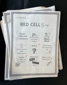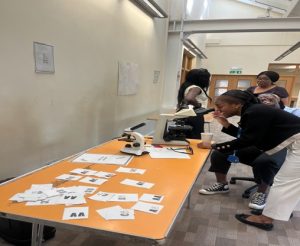 In the breaks, there were opportunities to speak to other charities and healthcare professionals. We were gratefully joined by Renaissance Foundation and Roald Dahl’s Marvellous Children’s Charity, both organisations which support young people with chronic conditions. The ‘red cell bingo’ activity compelled patients to talk to each charity and find out what they do; to ask questions about sickle cell to HCPs; and to test their learning by explaining things themselves. Young people even got the chance to look at sickled red blood cells and thalassemia under a microscope!