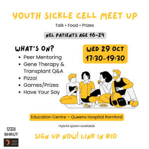 At Queens Hospital, we collaborated with the BHRUT haematology team to host an event for young people to meet each other, and find out more about the NEL mentoring programme and treatment options like gene therapy, chaired by Dr Paul Greaves. Using a survey and interactive Padlet board, we used this session to assess knowledge of and barriers to peer support on offer, and what further support is needed for patients. The lead mentors explained what peer mentoring is, why it works and how to get involved. There was space to meet the mentors and ask lots of questions, online or in-person. More information about the peer mentoring is available on this video which was shown: https://youtu.be/cbVKEVyJYCg